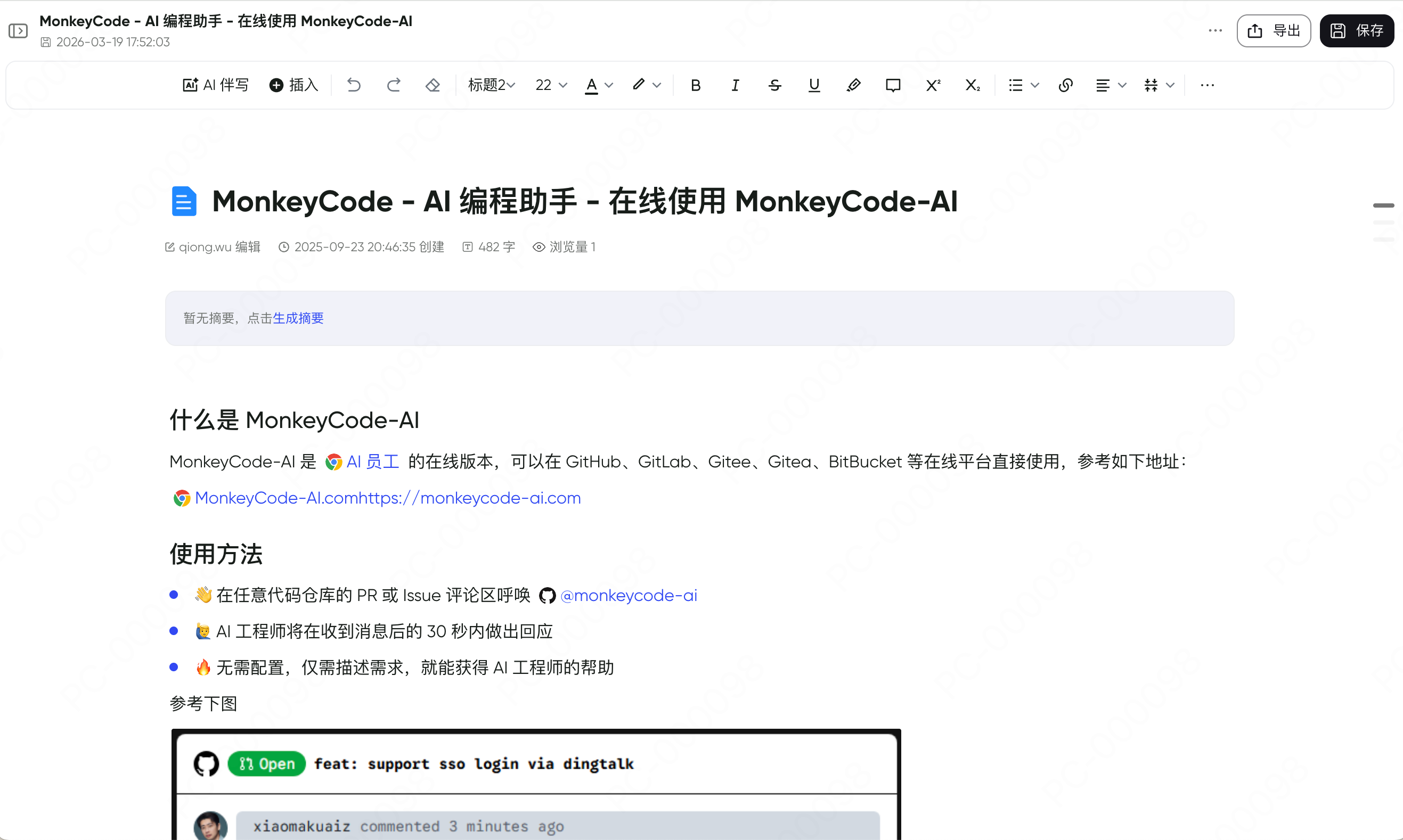 AI原生赋能,重构知识管理效率 :搭载RAG检索增强引擎,实现智能问答、内容溯源、AI辅助创作,缩短知识查找与沉淀周期,降低新人培训成本,提升团队协作效率,内网可部署本地模型,兼顾效率与安全。