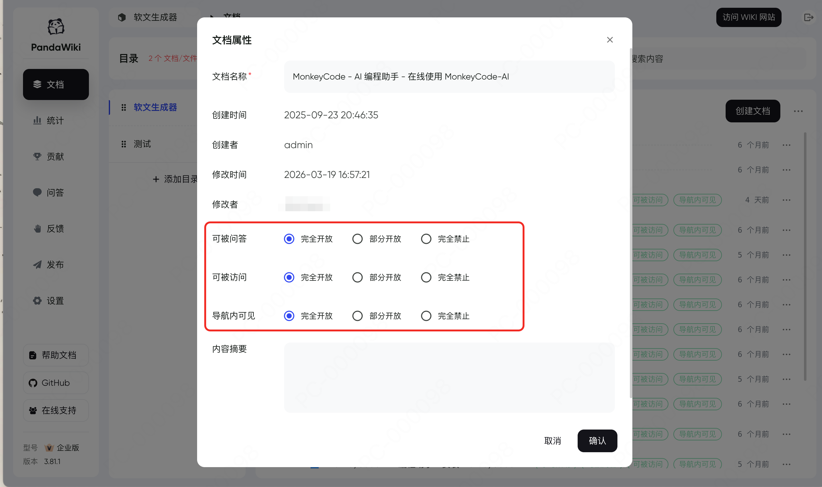 PandaWiki 作为一款采用AGPL-3.0开源许可证 的企业级Wiki工具,凭借开源透明、无厂商锁定、AI原生、私有化部署的核心优势,成为2026年企业知识管理的最优解,本文结合全场景实测,深度解析其核心价值,为企业选型提供精准参考。
