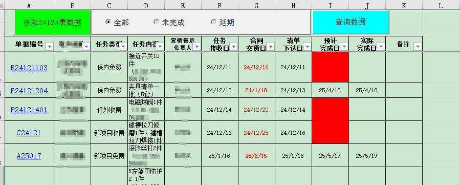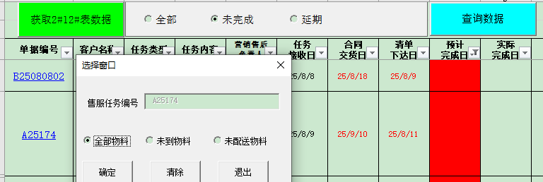 解决思路是先取12#表和2#表的数据,在同一个个表格内,通过任务编号进行关联。可以借用"在制物料任务查询"的框架进行开发