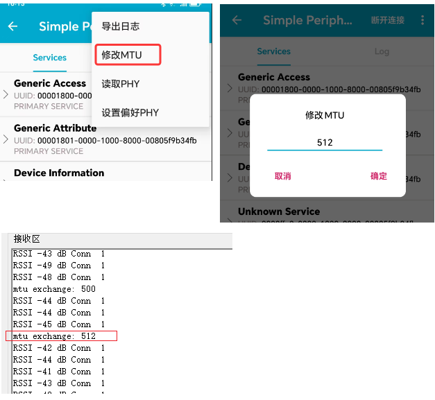 然后通过手机连接从机,手机端发起 MTU 交互,就能够成功: