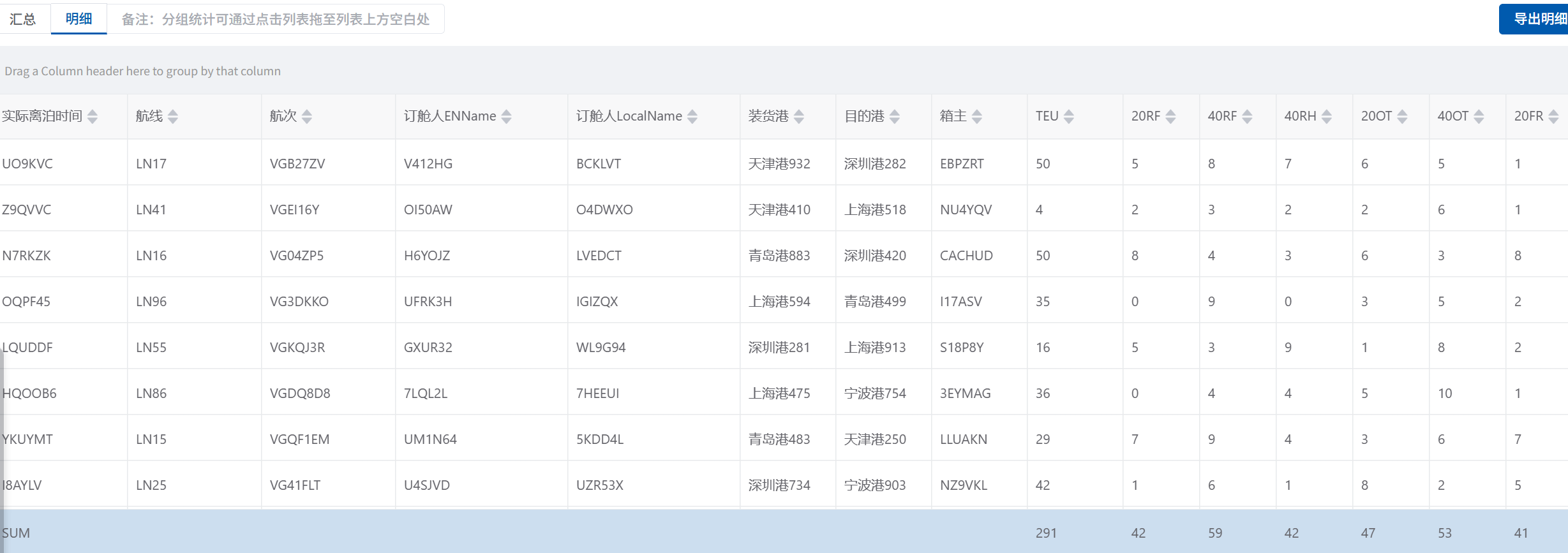 // 生成分组汇总行(包含所有集装箱类型的求和结果)