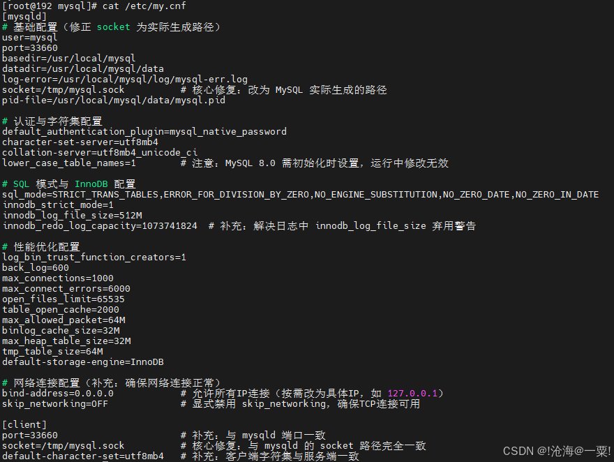 port=33660 # 补充:与 mysqld 端口一致