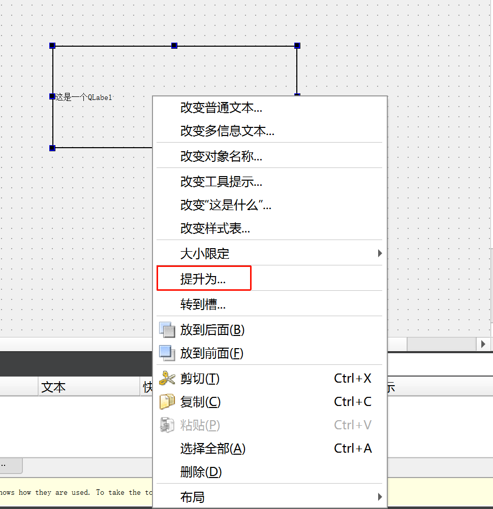 右键选择 QLabel 控件,选择 "提升为"