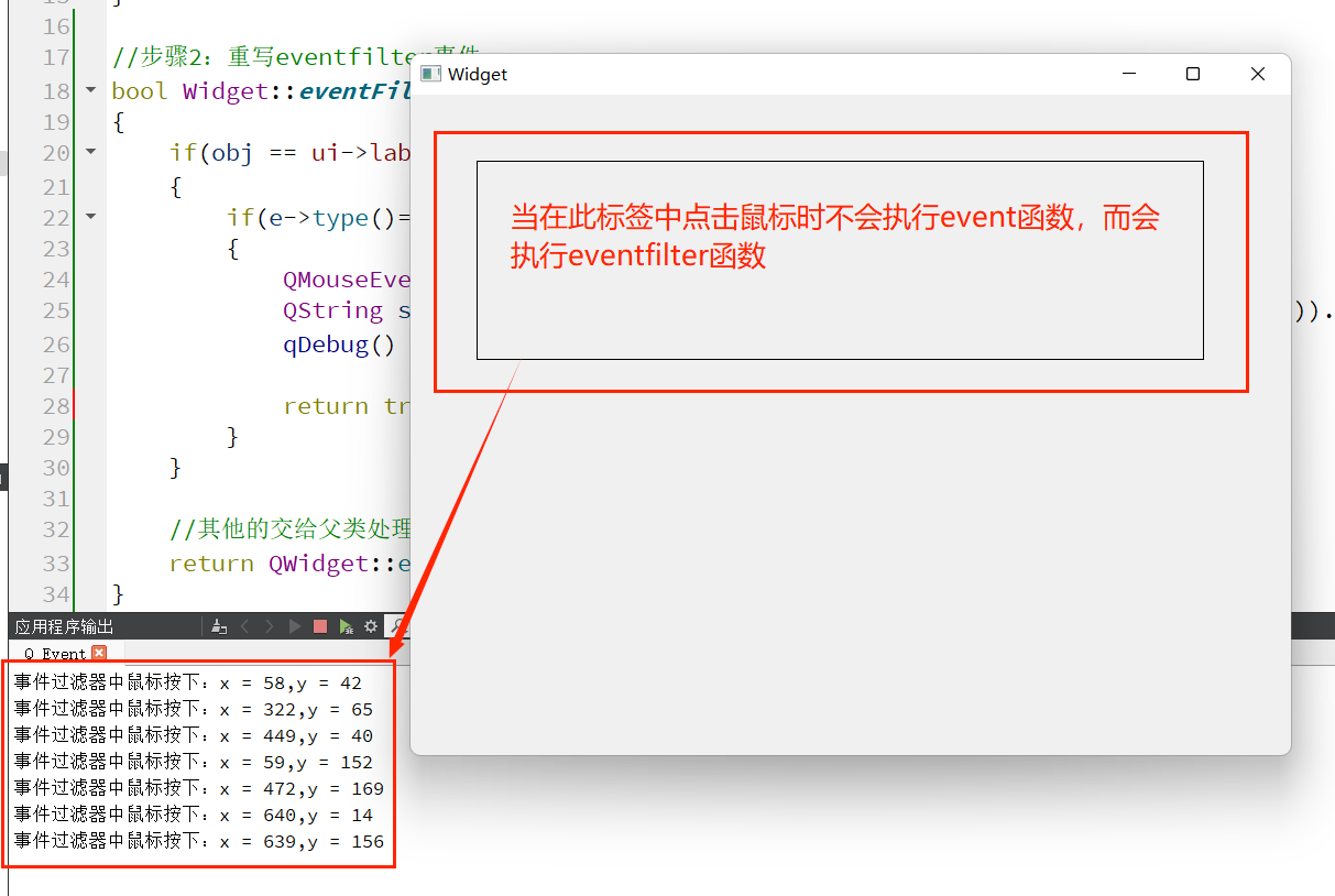 实际Qt开发程序过程中,绝大部分和用户之间进行的交互都是通过"信号槽"来完成的,有些特殊情况下,信号槽不一定能搞定.(某个用户的动作行为,Qt 没有提供对应的信号.)此时就需要通过重写事件处理函数的形式,来手动处理事件的响应逻辑