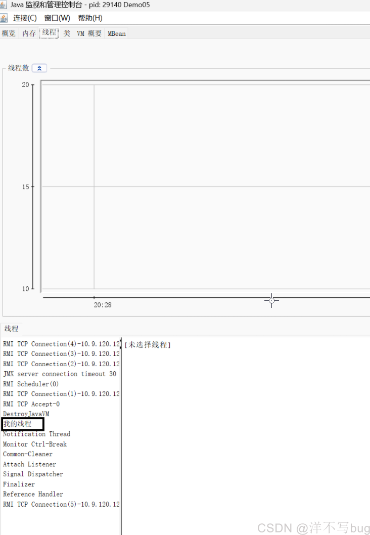 不知道铁汁们有没有发现一个问题,监视平台中没有主线程,只有我们创建的这个线程,那这是为什么呢?