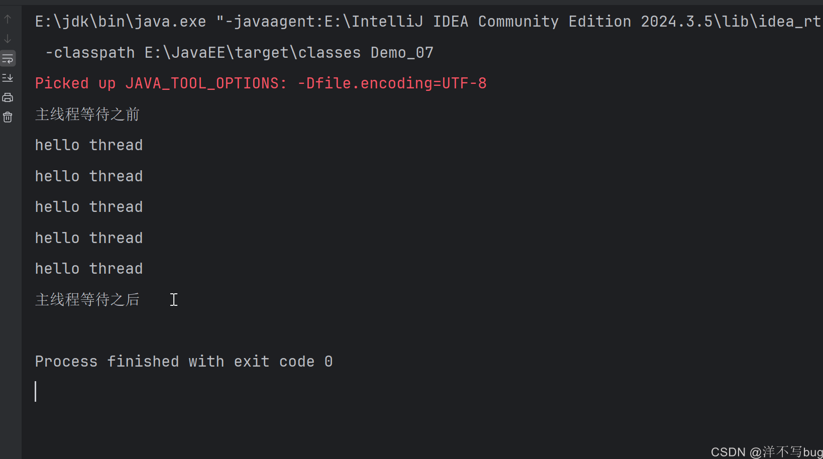 在前面的线程运行特点中,提到了同时调用两个线程后,哪个先执行是不确定的(无法确定到底是先打印hello thread 还是hello main),这种随机的事情对于程序员写代码时不太好的,我们有时希望线程的执行顺序能够固定下来