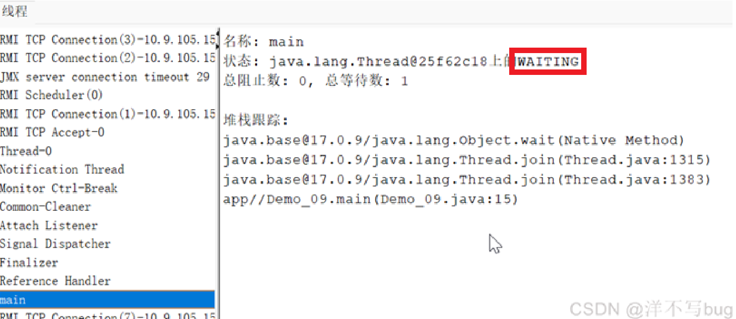 - WAITING:无超时时间的阻塞,如join()、wait()(无参)