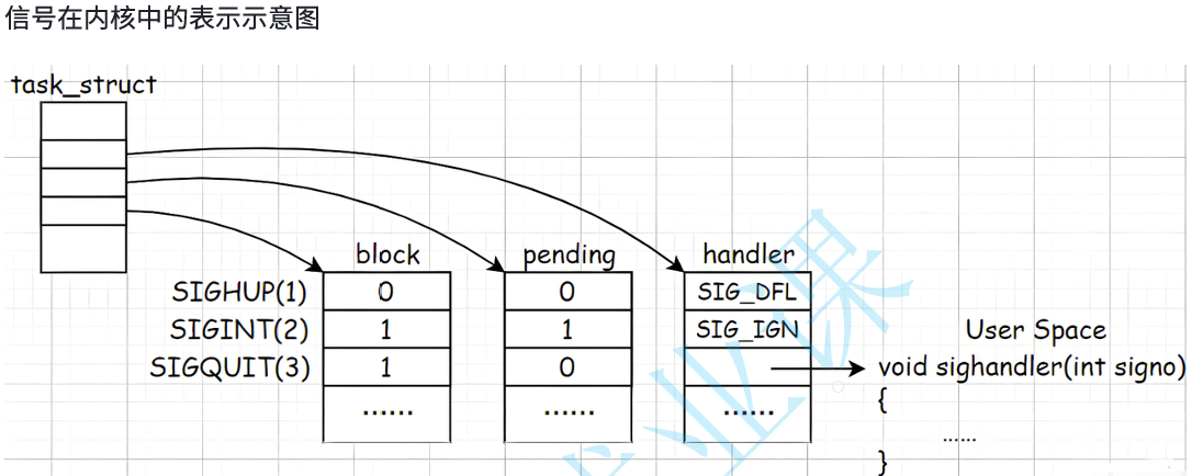 - handler 表:这个信号来了之后该怎么处理