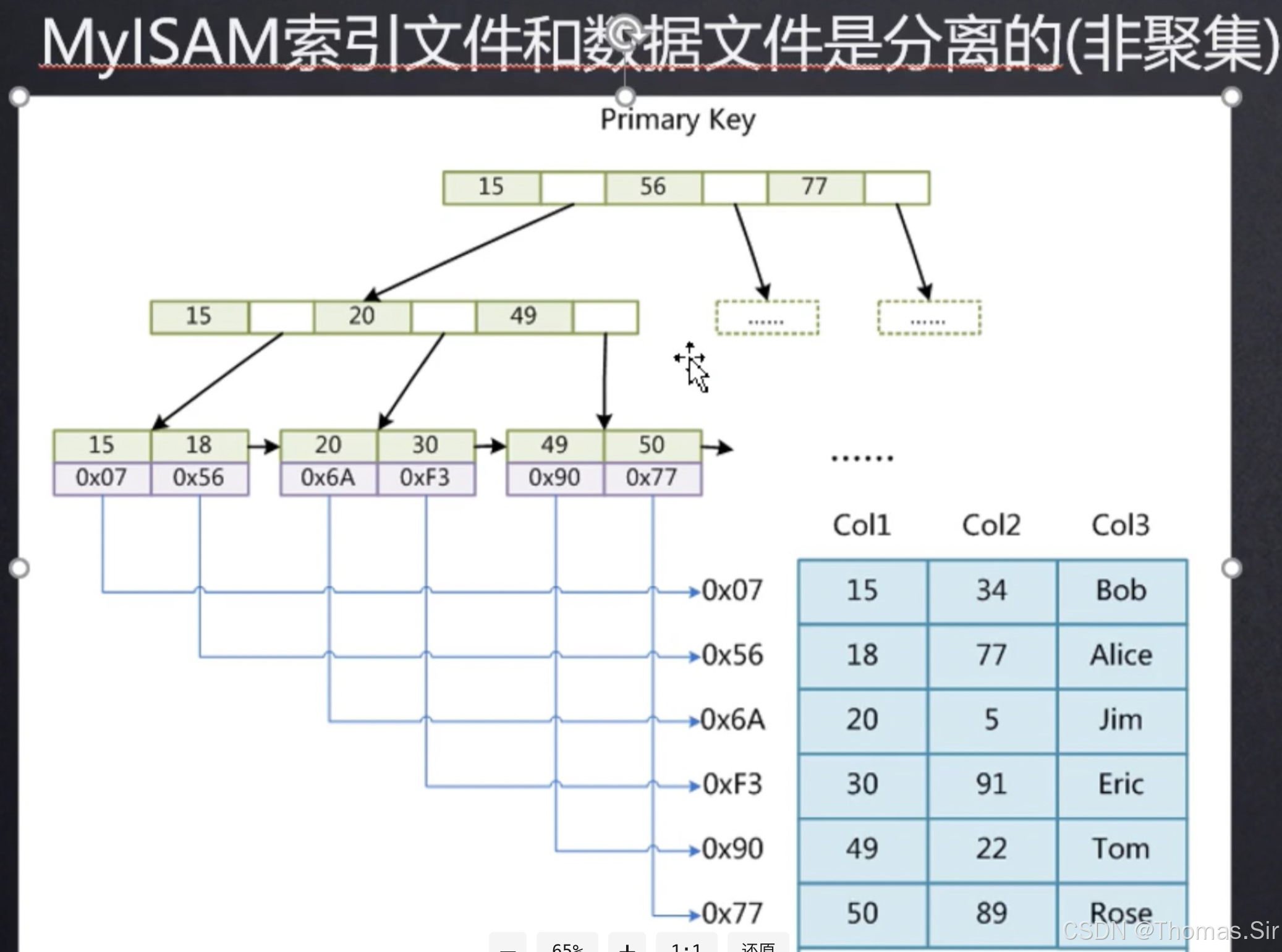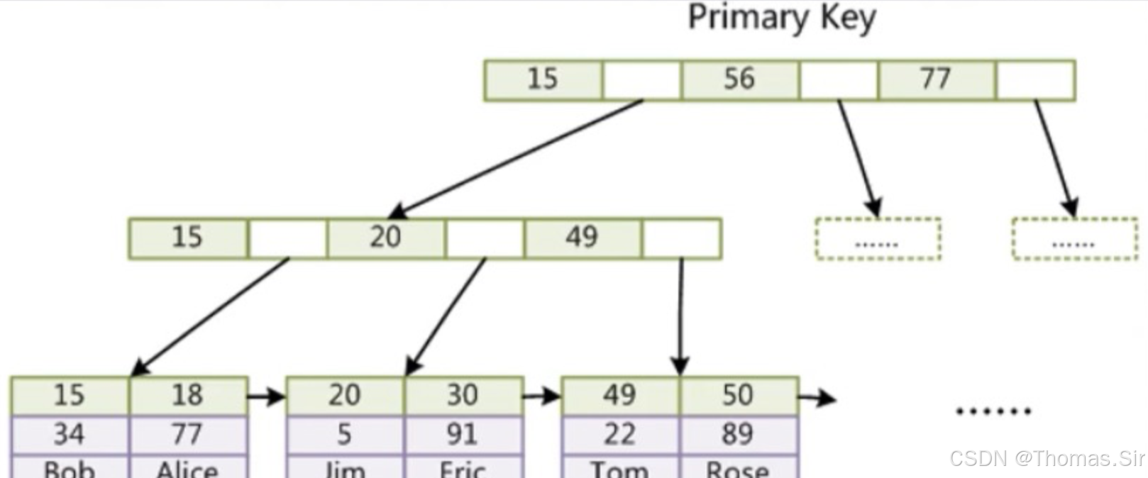 到这里就可以大致看出来了,这个结构就是上面说的B+树。每一页即B+树的一个节点