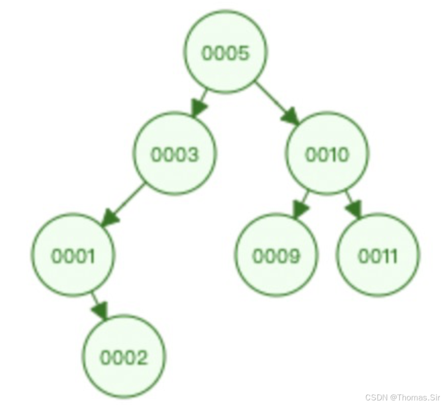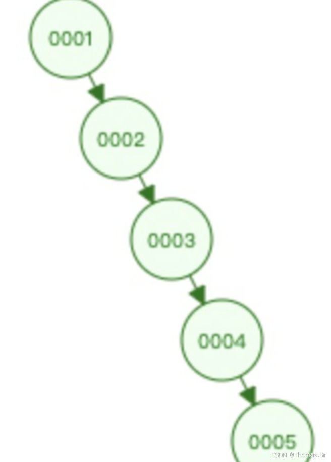 因为当值依次递增插入时树的高度会变得特别高。就例如上图查询0007只用3次,那查询70000呢?几乎要用30000次。效率会变得特别低。