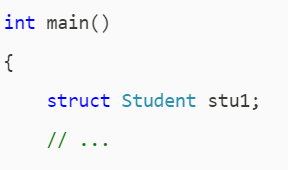 struct Student stu1;: 这里使用了刚才定义的类型来声明一个具体的变量**stu1**。- 内存分配 : 当这行代码执行时,系统会在栈(Stack)上为