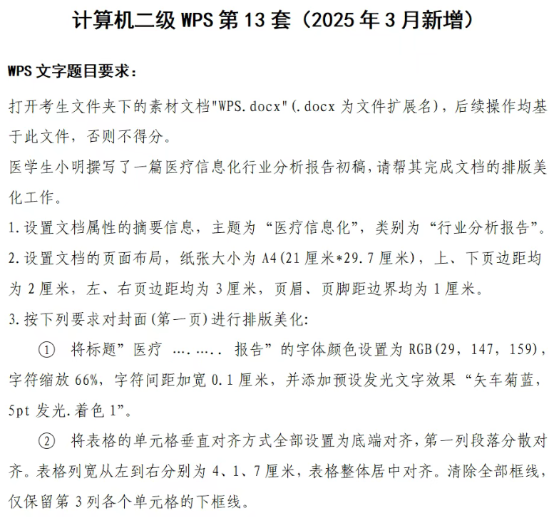 📝计算机二级WPS新题(第十三套)
