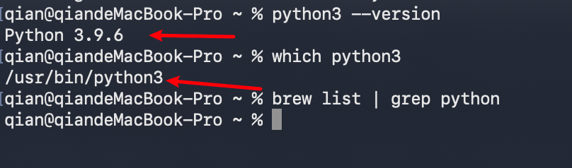 发现系统的python说3.9.6,与我安装的不符呀。