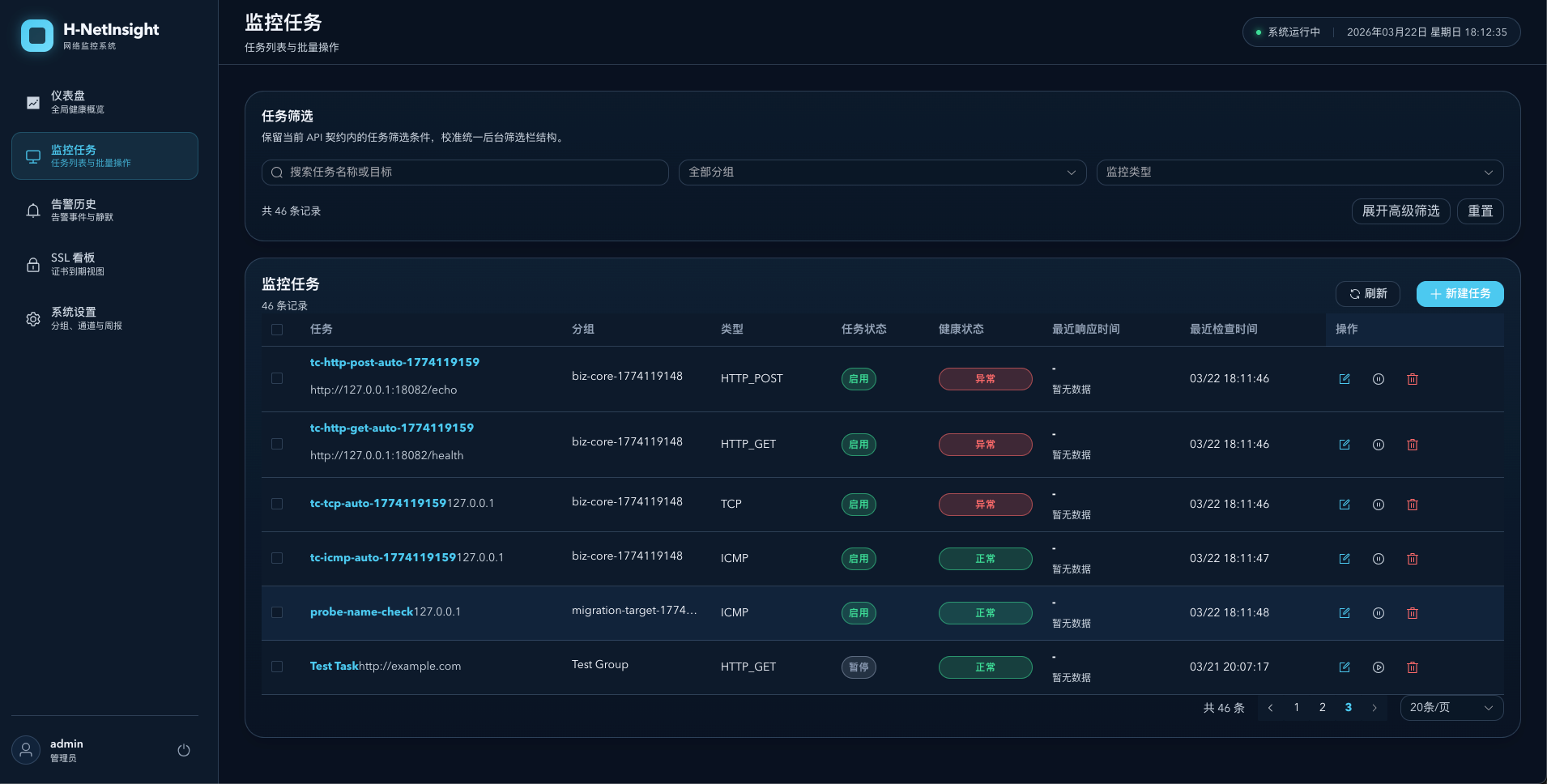 - 认证、用户、分组、告警规则、通知通道的完整 CRUD