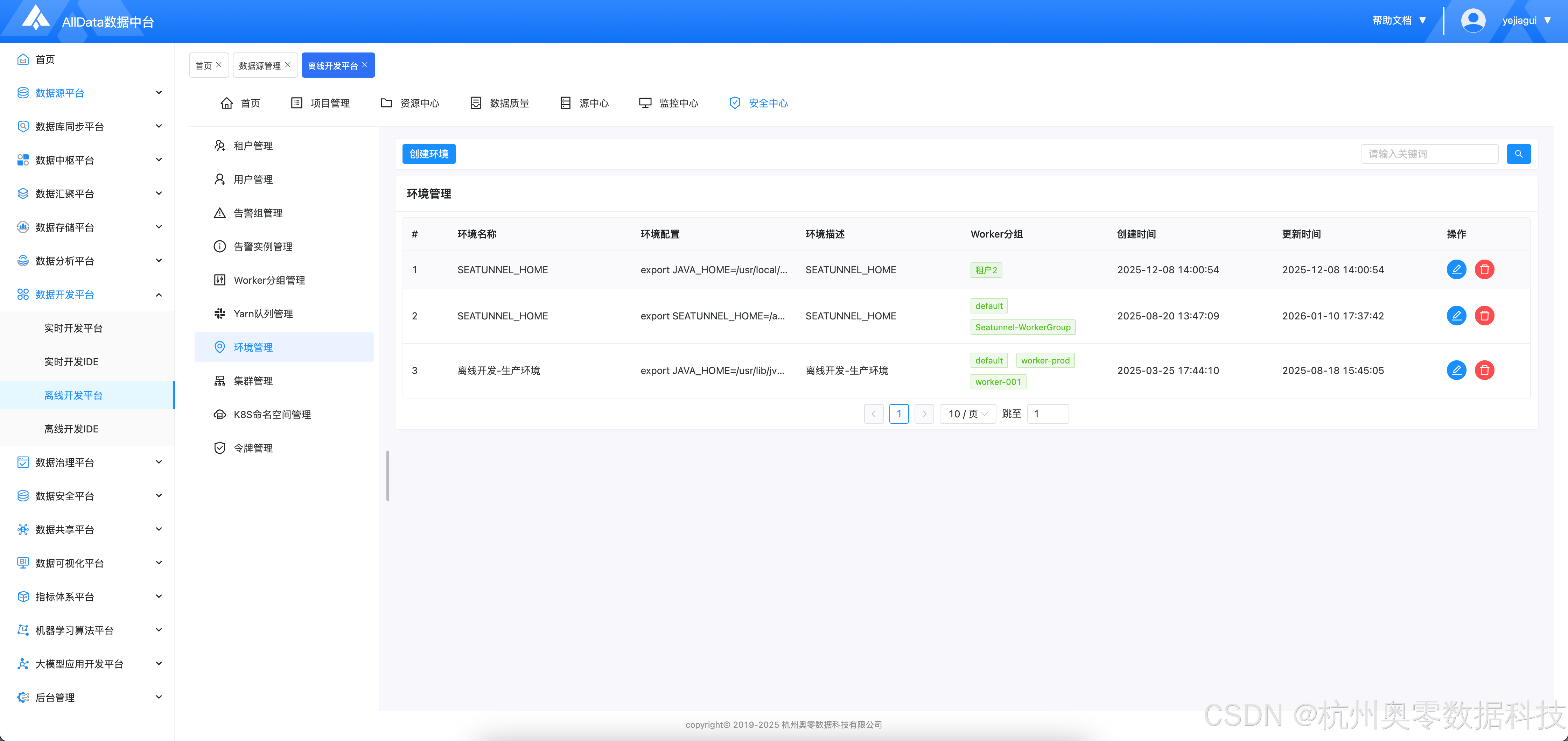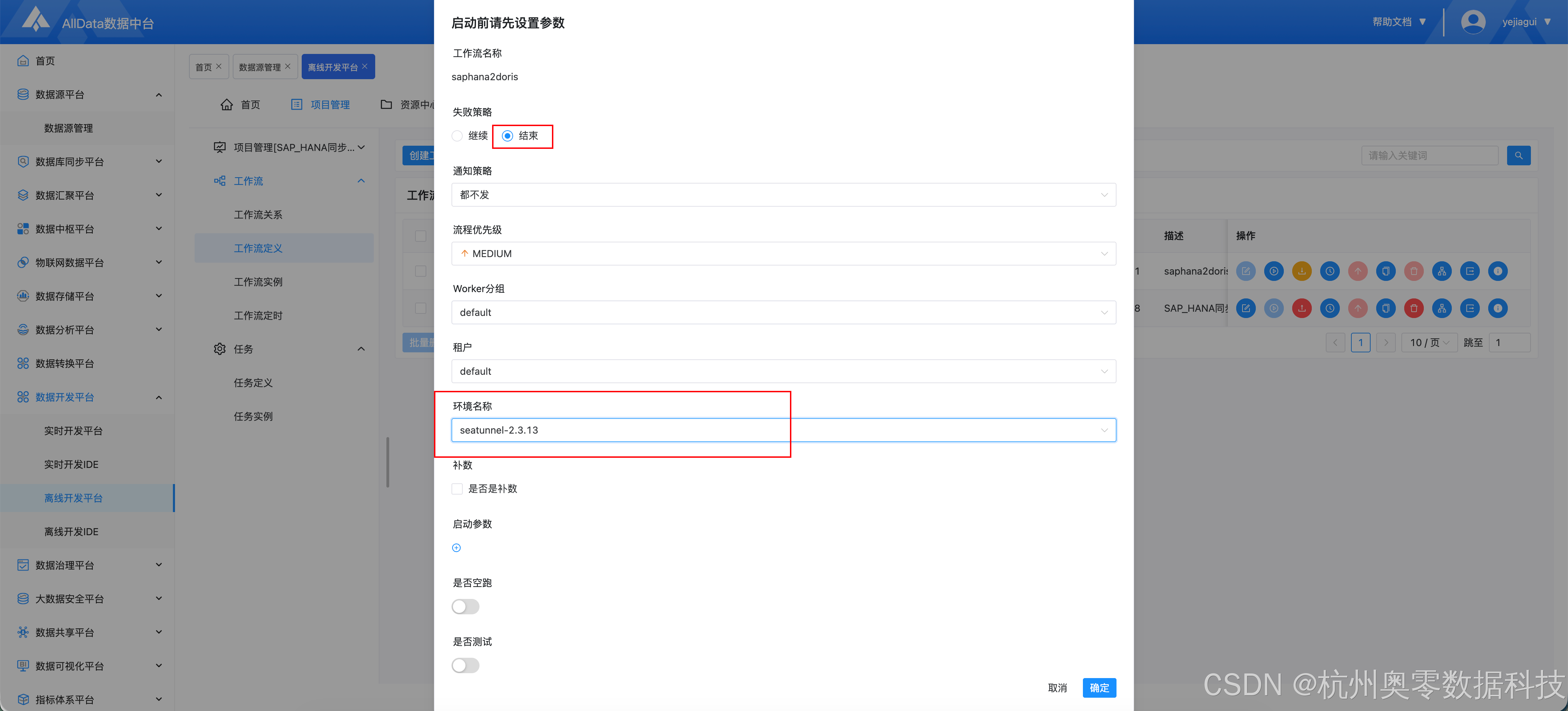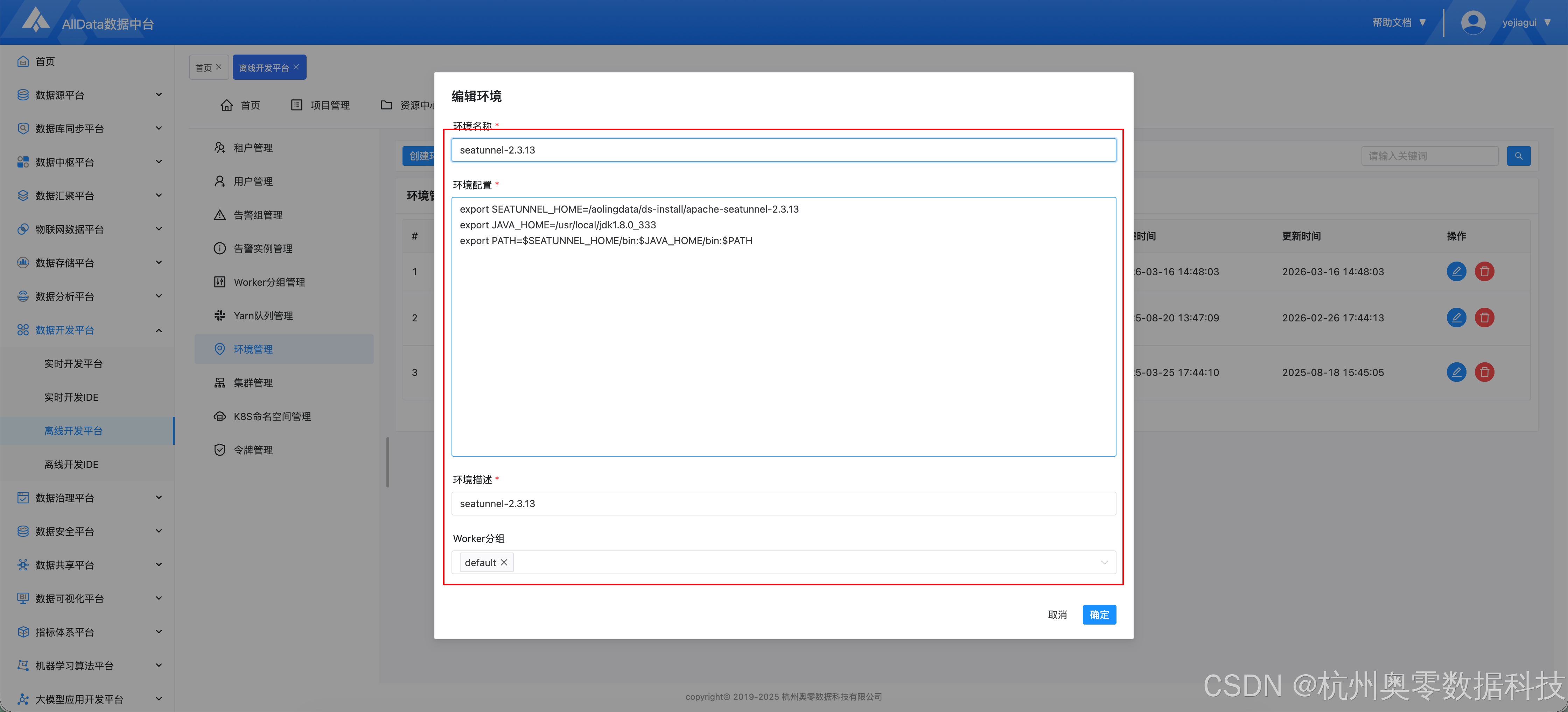 【AllData数据中台】集成开源项目 DolphinScheduler+Seatunnel,构建了可视化、高可靠的离线开发平台。