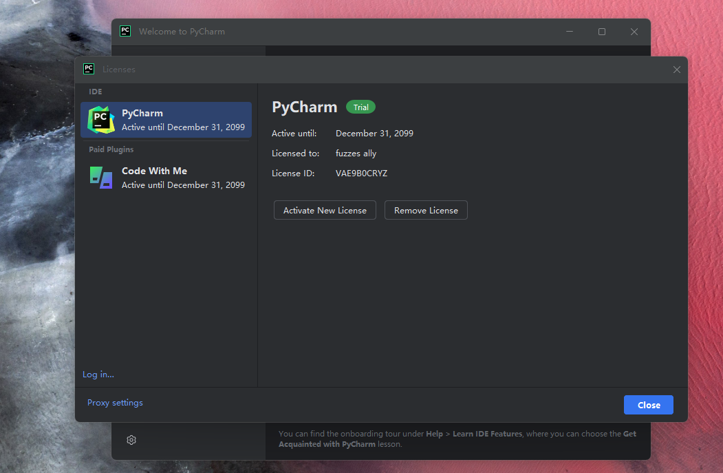 本教程适用于Pycharm,亲测可用,打开后可看到界面显示使用到2099年。