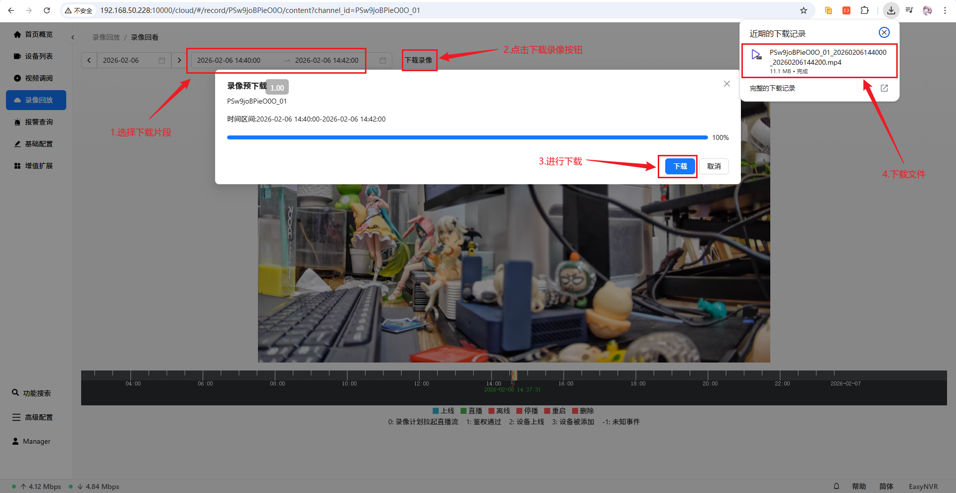 到这里,EasyNVR 已经在飞牛 NAS 上跑起来了,录像也都存在本地硬盘上,彻底告别了云存储月租费 。但问题来了:虽然各家摄像头 APP 也能看实时画面,但想回看历史录像就要交钱,而且家里几个不同品牌的摄像头还得装好几个 APP,管理起来很麻烦。
