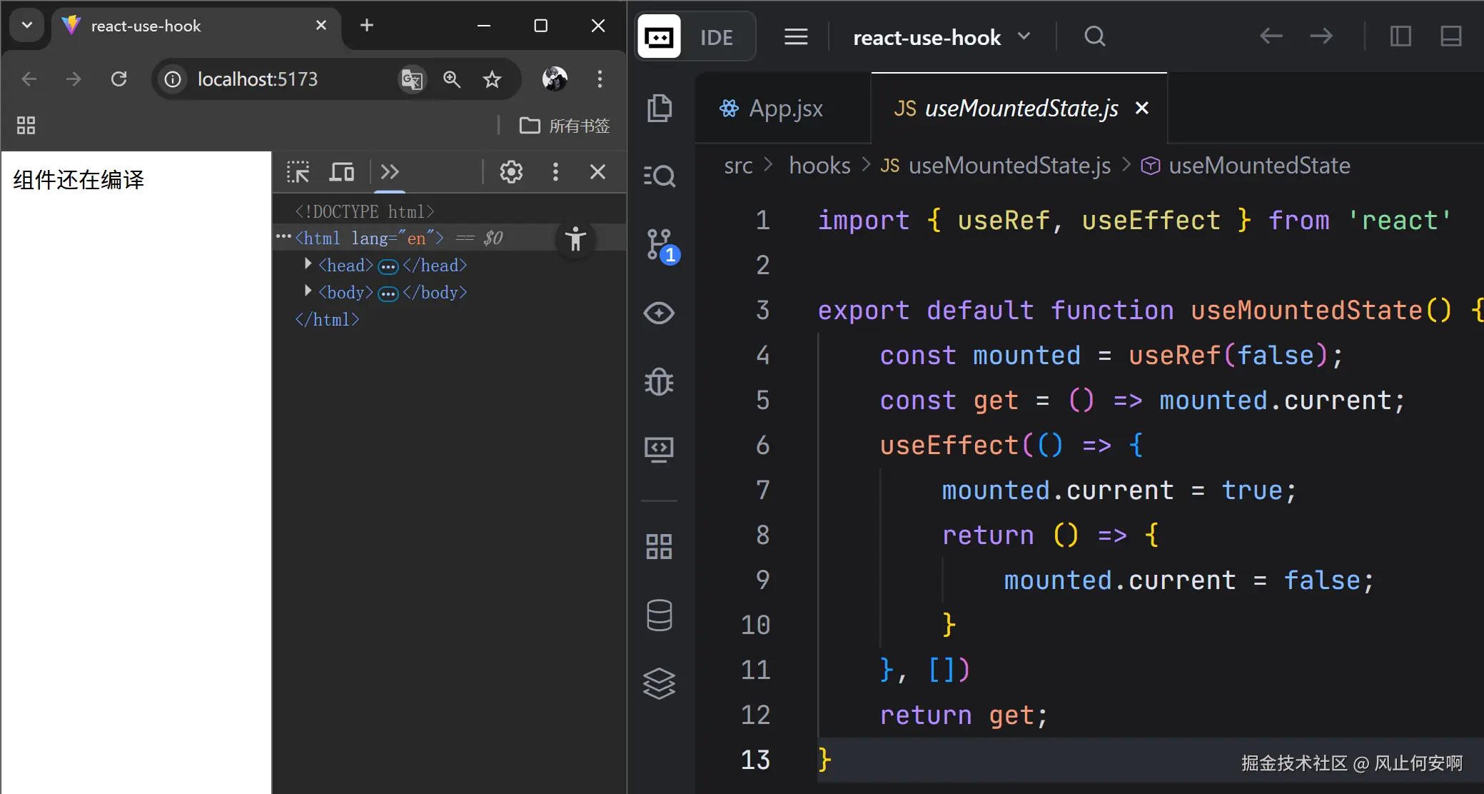 {isMounted() ? '组件挂载完成 🎉' : '组件还在编译 🛠️'}