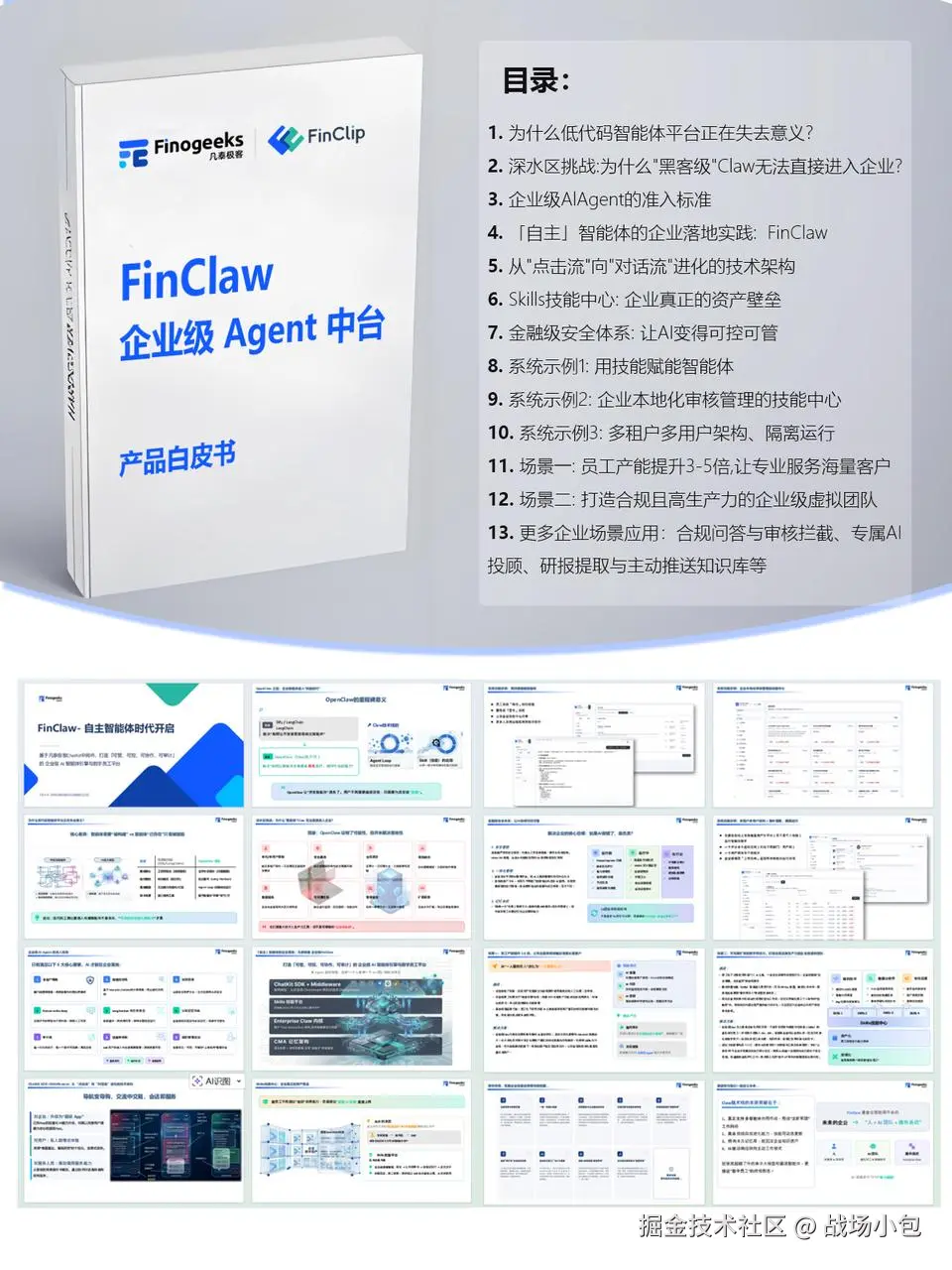 如果说 ChatGPT 是"AI 的浏览器",OpenClaw 是"AI 的操作系统雏形",那么企业级 Claw 代表的是 AI 进入基础设施层的时代。这场竞争的难度不在模型参数,而在谁能啃下那些"又重又脏"的工程活。国内已经有团队在做这件事,比如凡泰极客推出的 FinClaw,就是一个面向企业场景的 Claw 产品,试图把多租户、合规、审计这些"脏活"工程化地解决掉。
