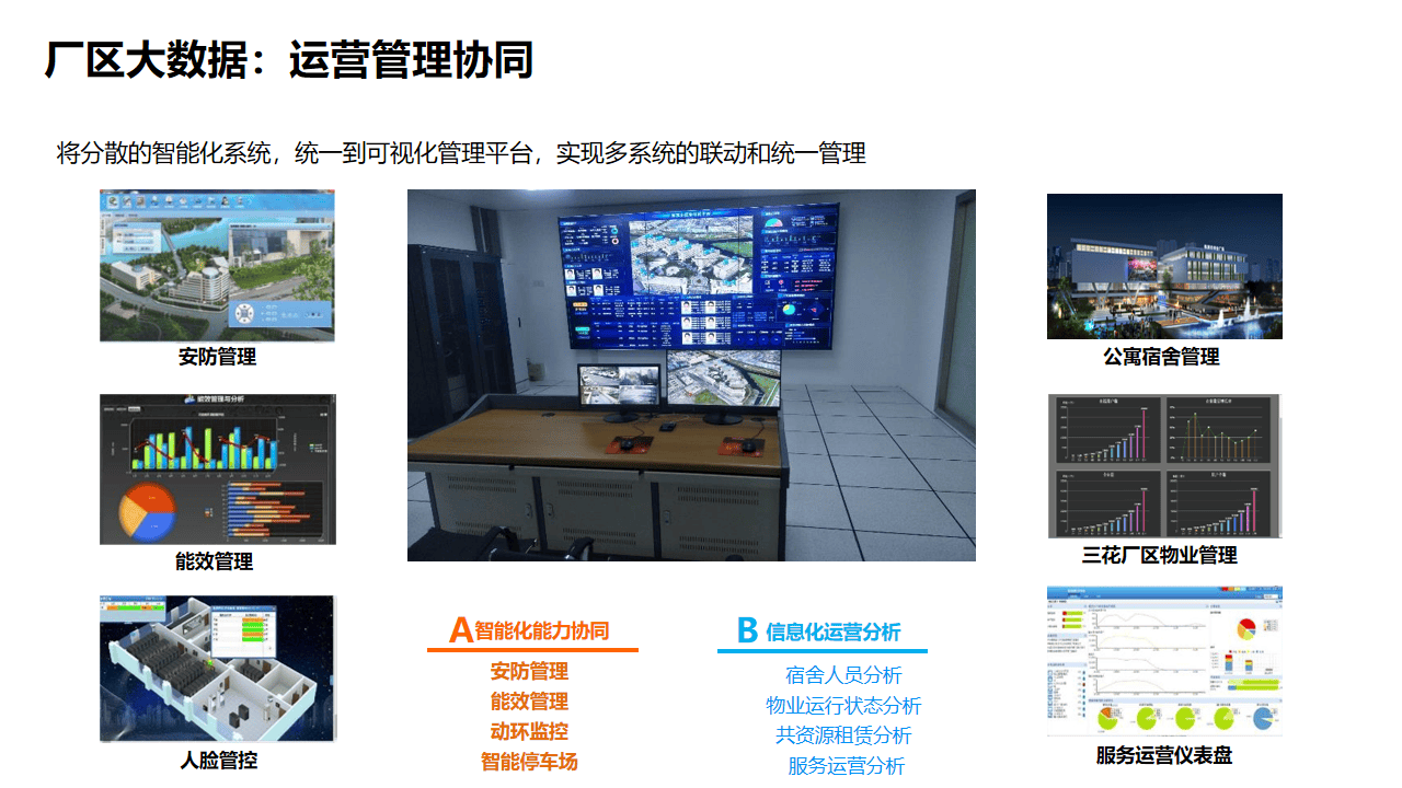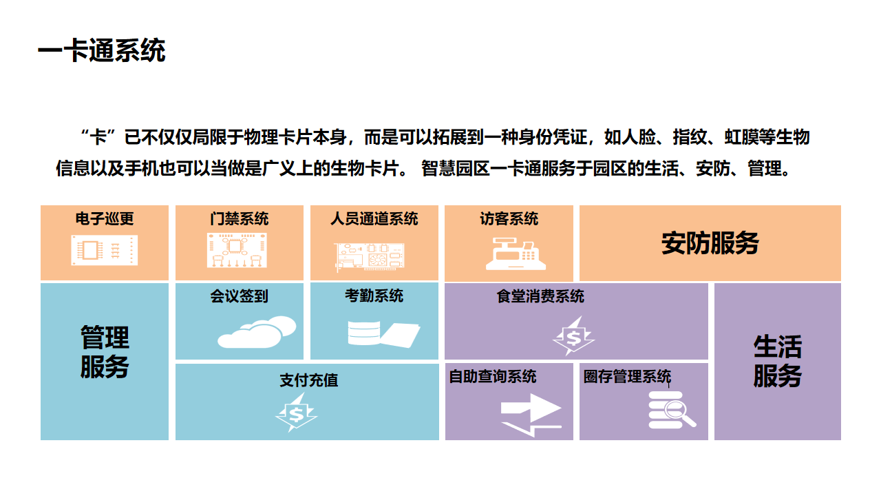 - 核心应用:园区安防、智能消费、访客管理、公寓管理、能耗管理、考勤管理等,直接服务于日常运营。