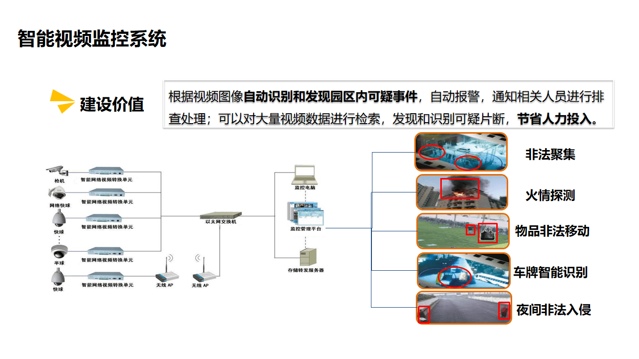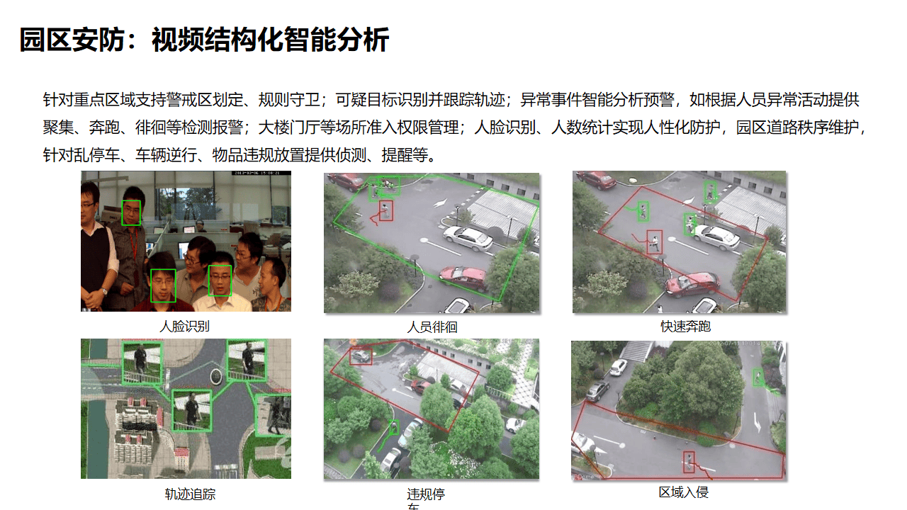 - 智能预警:AI视频可自动识别"区域入侵"、"人员徘徊"、"违规停车"等异常事件,并主动报警。
