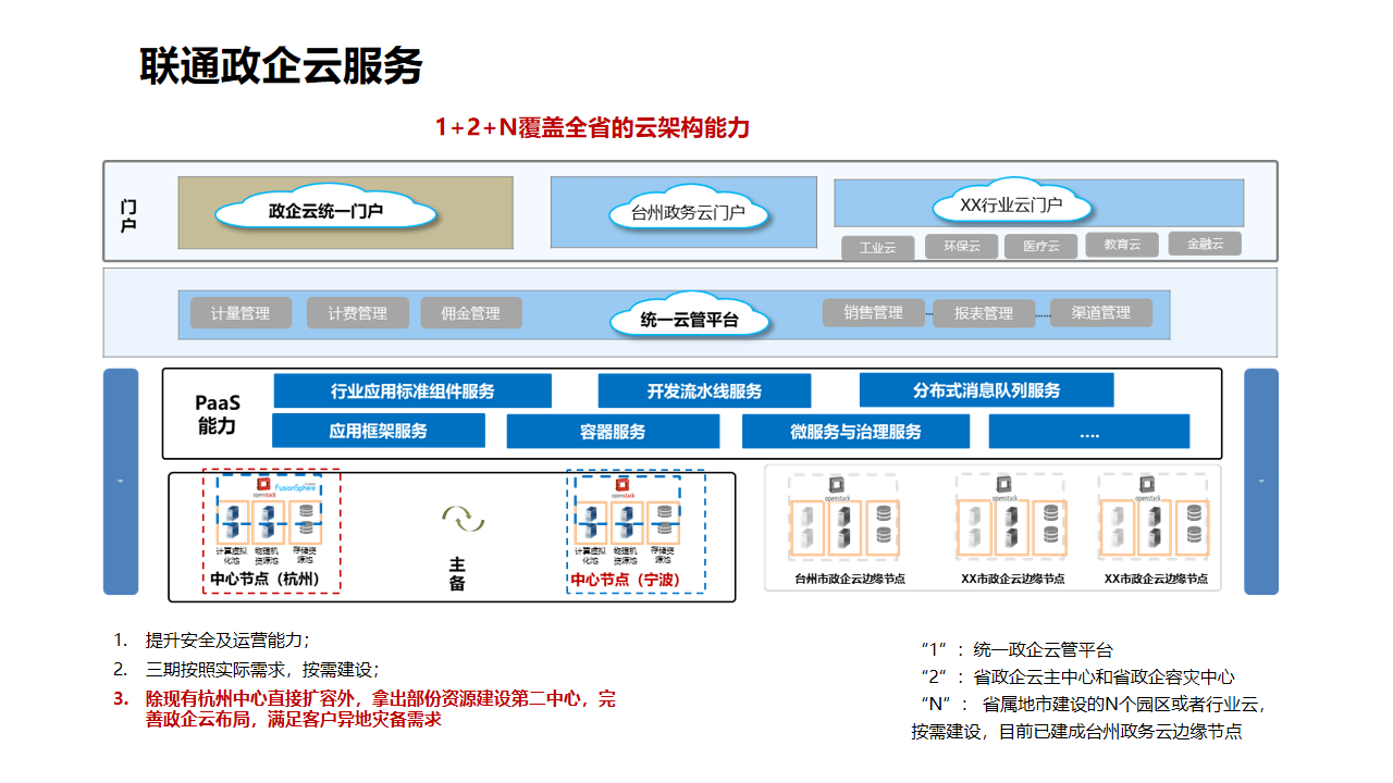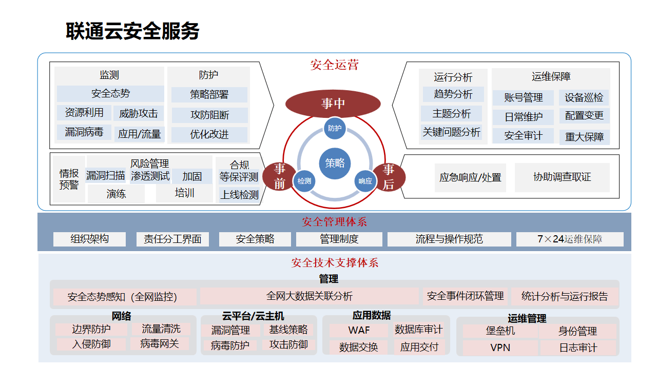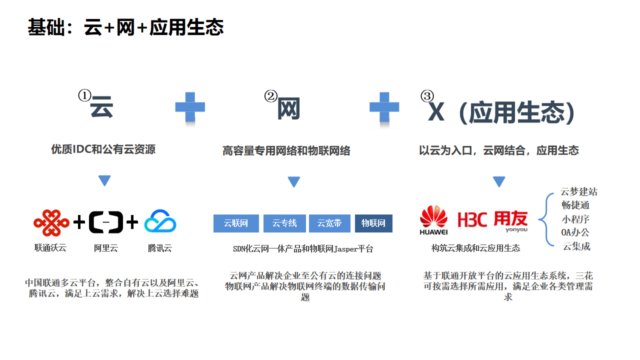 "云"为核:依托联通沃云,并整合阿里云、腾讯云等多云资源,构建一个弹性、安全、开放的云平台。