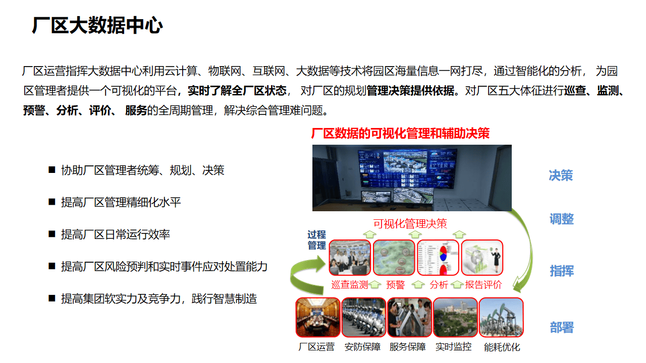 - 云脑决策中枢:运用AI和大数据分析技术,从海量数据中提炼出有价值的洞察,如风险预警、能效优化建议、运营评价报告等。