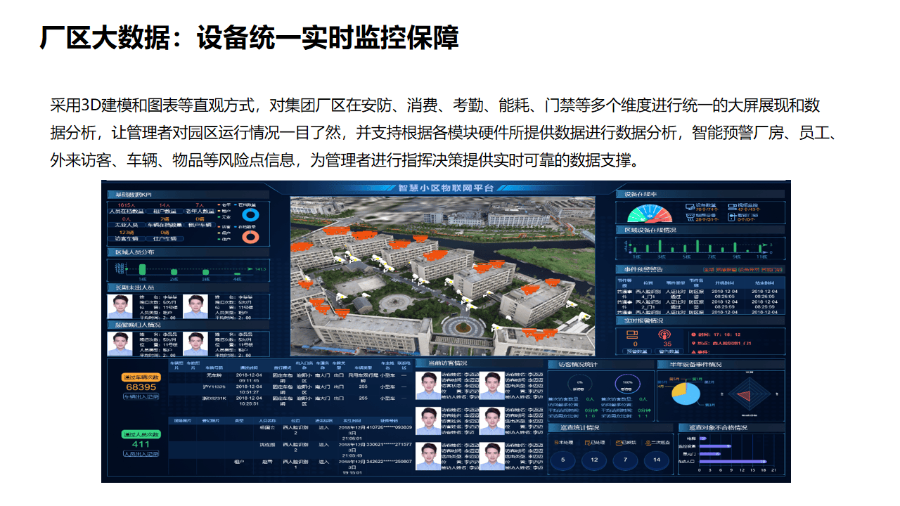 - 统一数据湖:平台汇聚来自安防、能耗、公寓、访客等各子系统的数据,形成厂区的"单一数据源"(Single Source of Truth)。