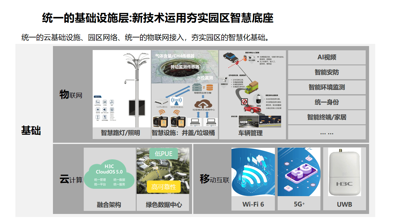 这是智慧园区的"神经末梢"和"血管"。它负责全面感知物理世界,并提供高速、可靠的网络通道。