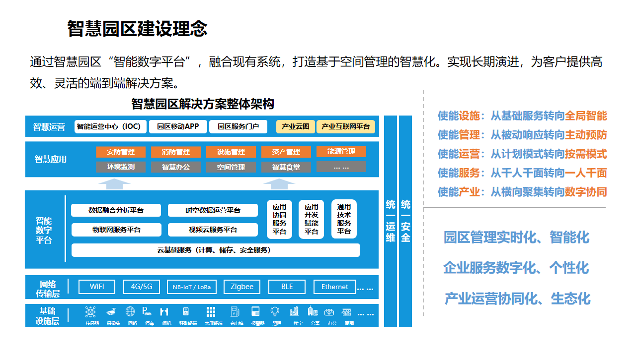 智慧园区的终极服务对象是"人"(企业、员工、访客)和"物"(资产、设施、车辆)。因此,方案必须围绕"空间"这一核心载体进行智能化重构。