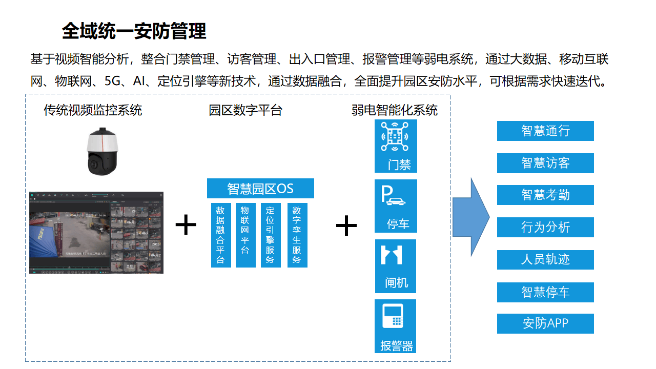 - 对人的友好服务:通过统一身份认证、无感通行、个性化服务推荐(如根据用户画像推送餐厅优惠、会议室空闲信息),让园区内的每个人都能享受到便捷、舒适、有温度的服务。