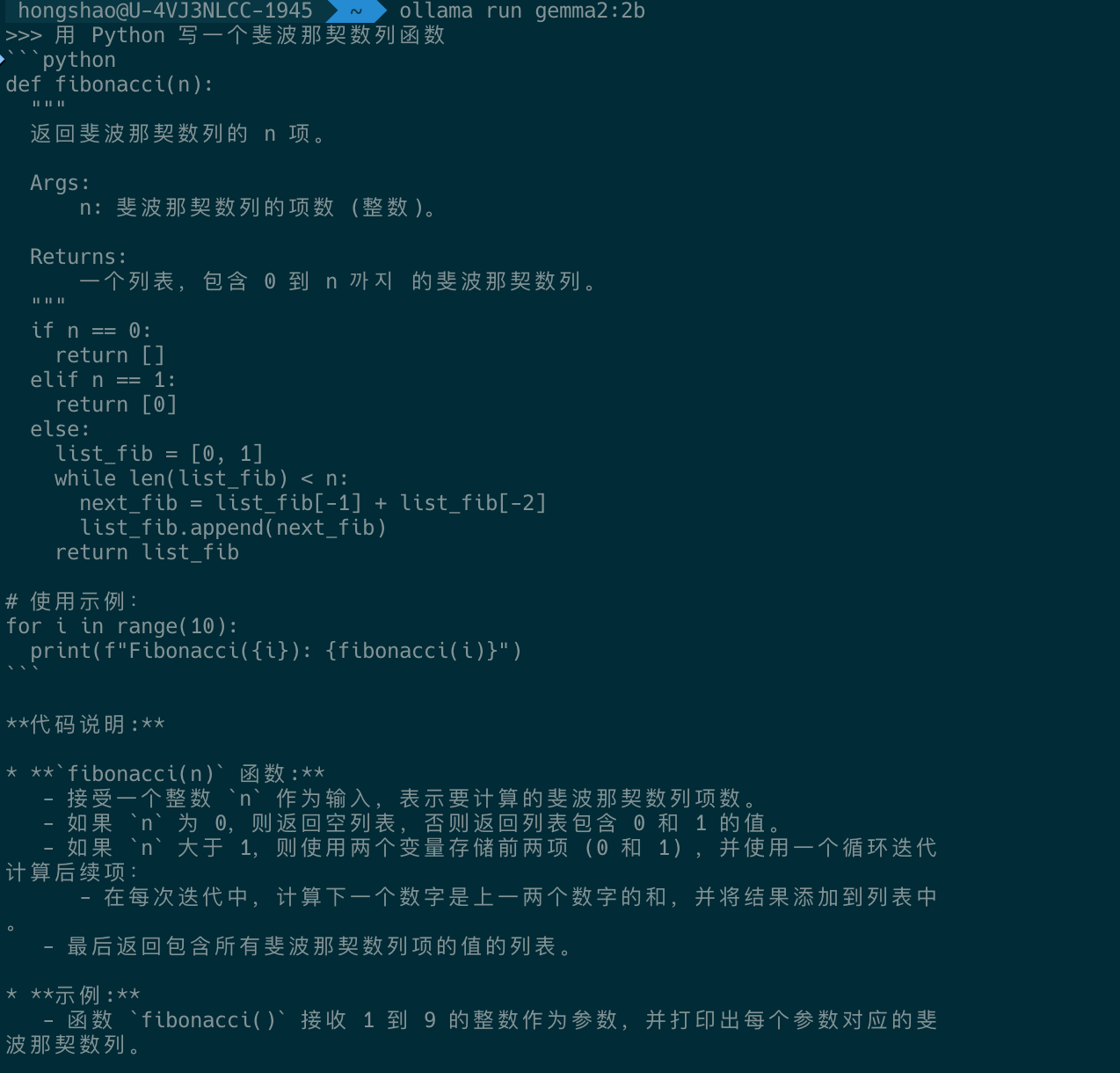 ollama run gemma2:2b "解释 Python 中的装饰器,并给出示例代码"