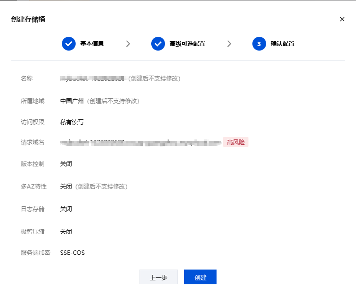 bucketname-appId形式(示例:bucket-125000000)。根据业务选择访问权限: