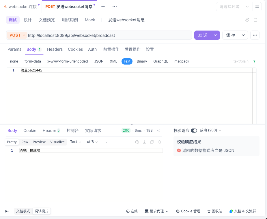 使用Apifo连接Websocket服务并发送http请求广播消息