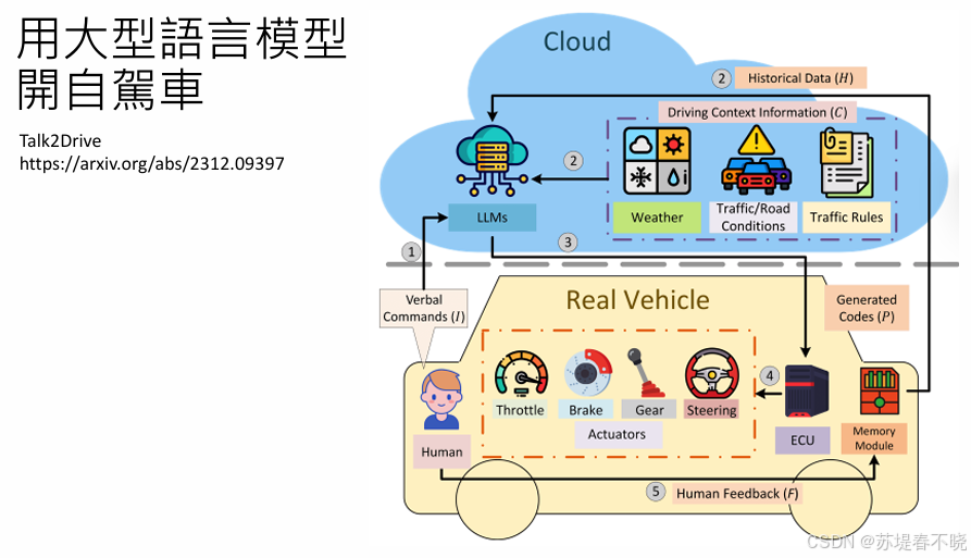 反馈回路:人对车辆的表现给出评价或修正(Human Feedback)。