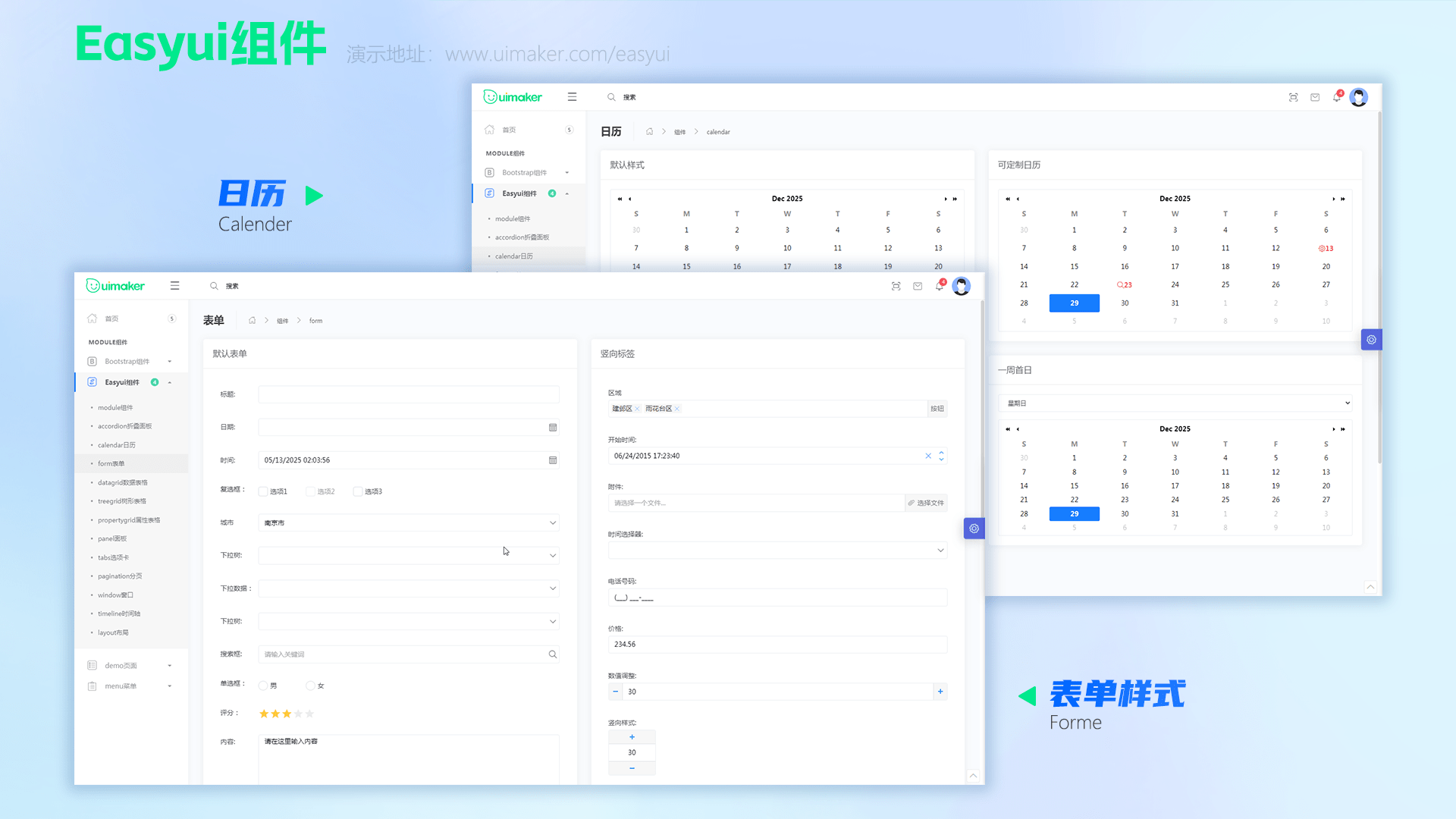 easyui组件-日历calendar+表单form