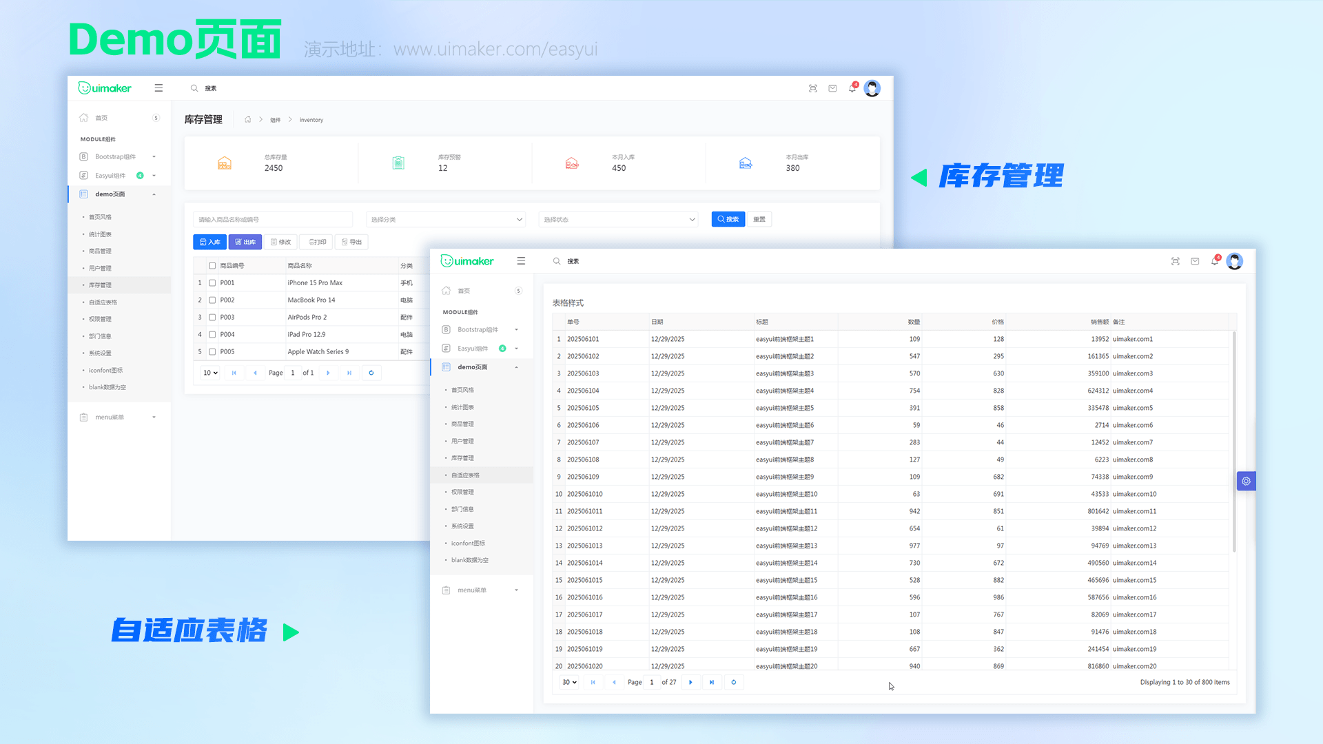 demo页面-库存管理+自适应表格