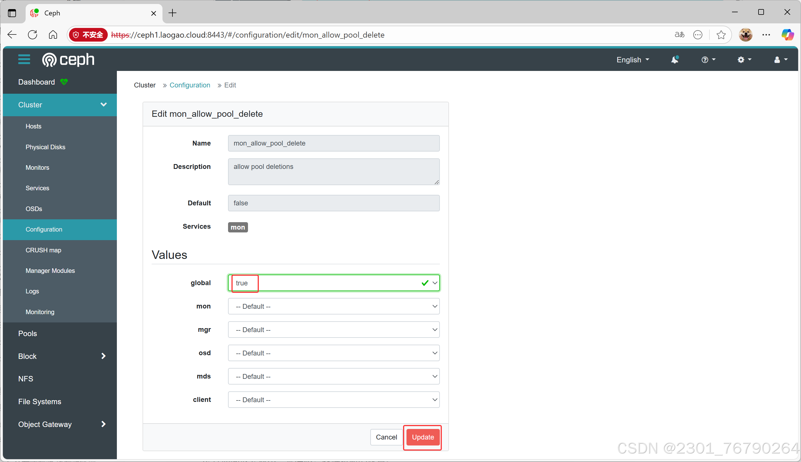 注意:Ceph 存储优先使用集中配置数据库中配置,弃用 ceph.conf 集群配置文件。