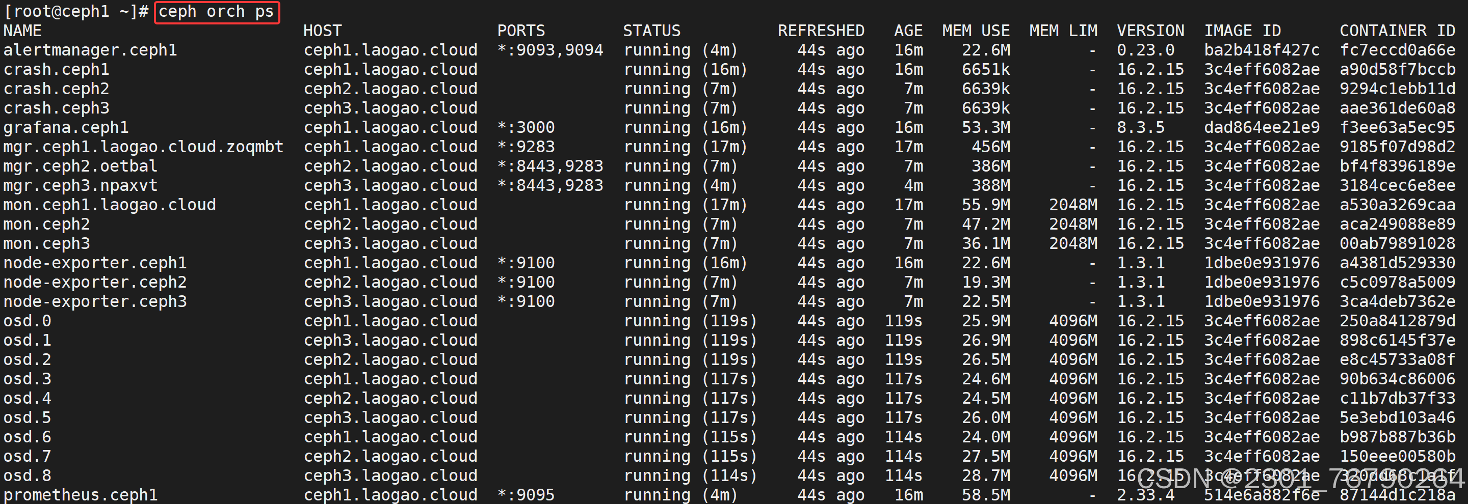 [root@ceph1 ~]# ceph orch ls osd