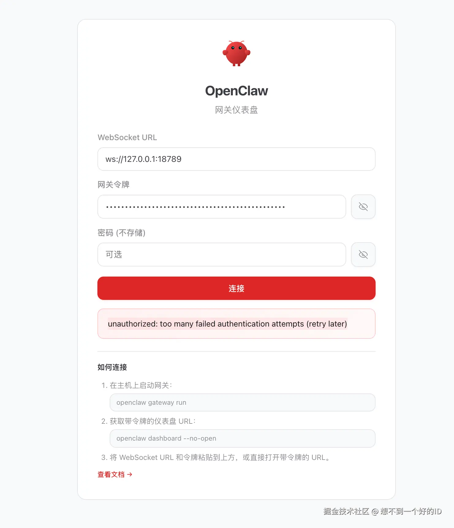 问题 1:Gateway Token 错误,提示「unauthorized: gateway token missing」
