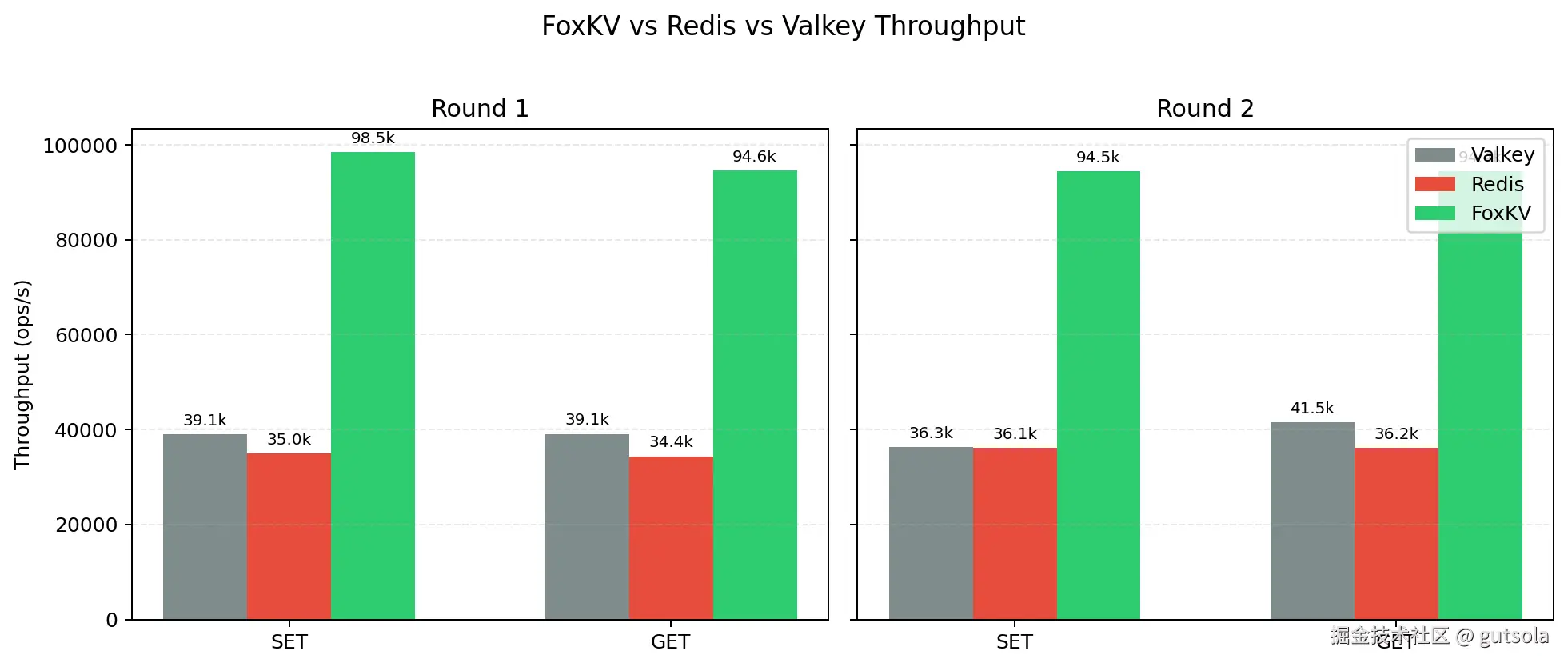 通过基准测试对比,FoxKV 在 SET/GET 操作上比 Redis 8.6.1 快 2.6-2.8 倍: