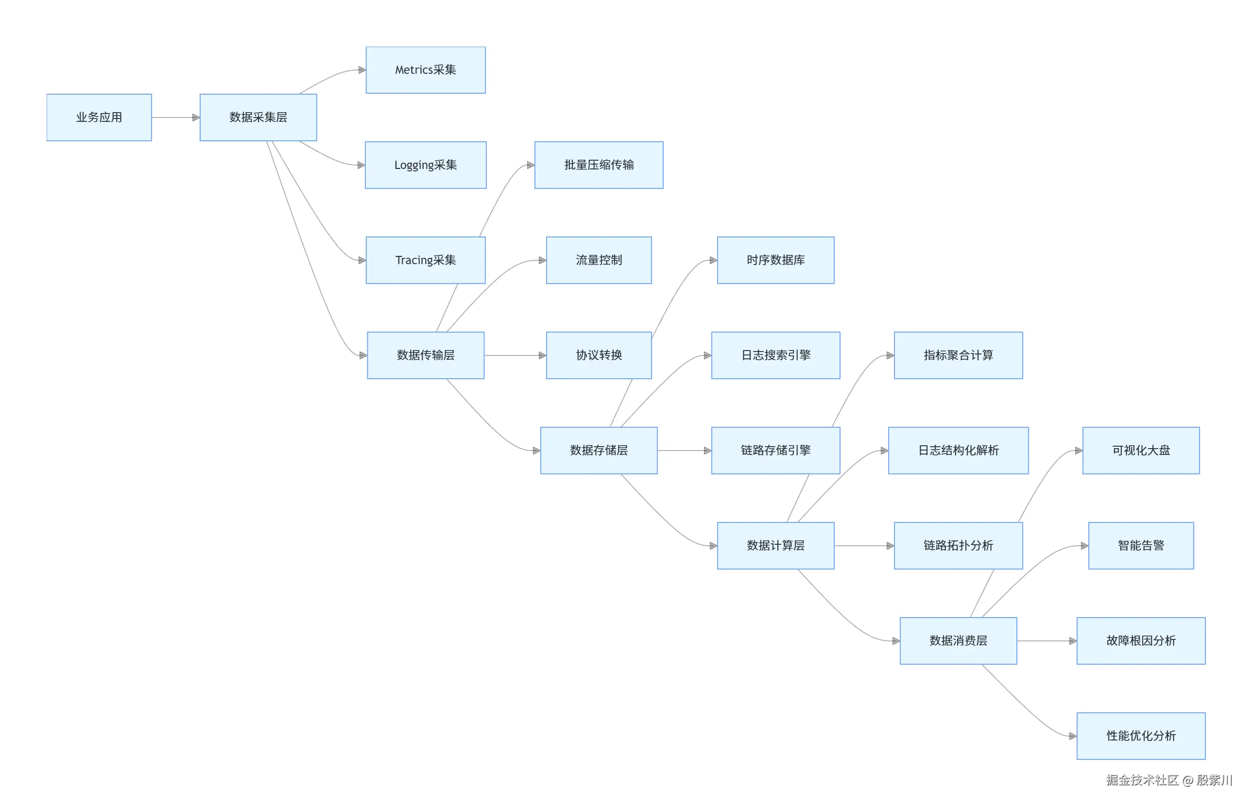 - Tracing的核心价值是还原分布式系统的调用路径,解决跨服务的故障定位与性能瓶颈问题,无法替代Metrics的宏观监控能力,也无法替代Logging的事件详情还原能力。