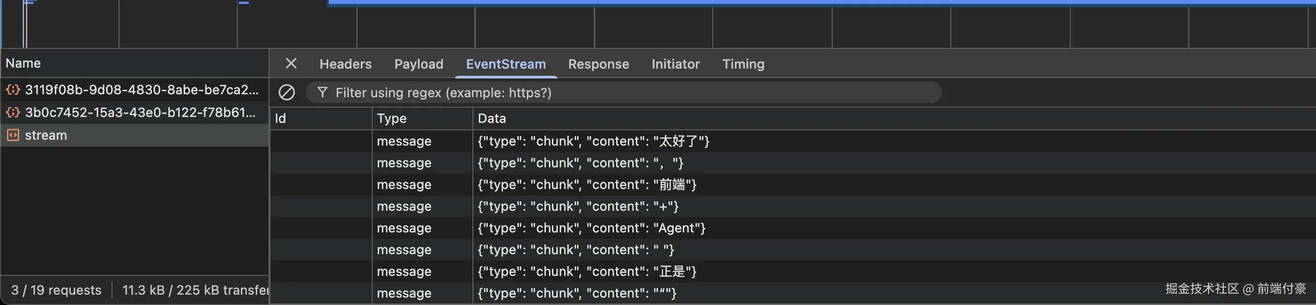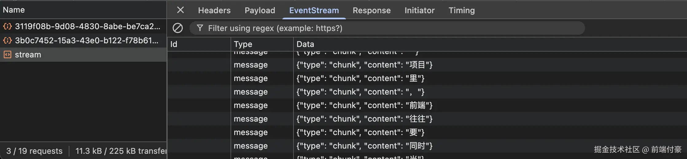 结果是 流式 一段一段输出的