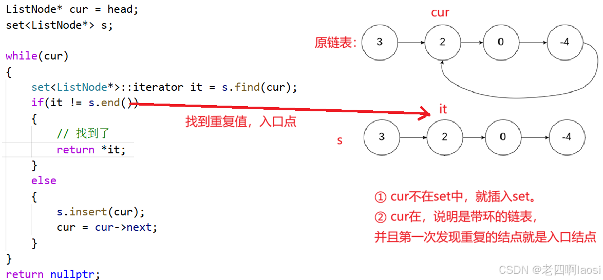 ② 那么设置random时,以cur->random作为key,就能得到copycur->random。(cur是原链表中当前节点,copycur是当前节点在拷贝链表中对应位置的拷贝节点)。