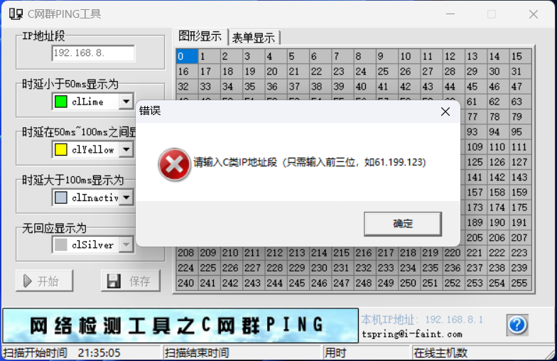 在 IP 地址段中输入 C 网地址,例如: