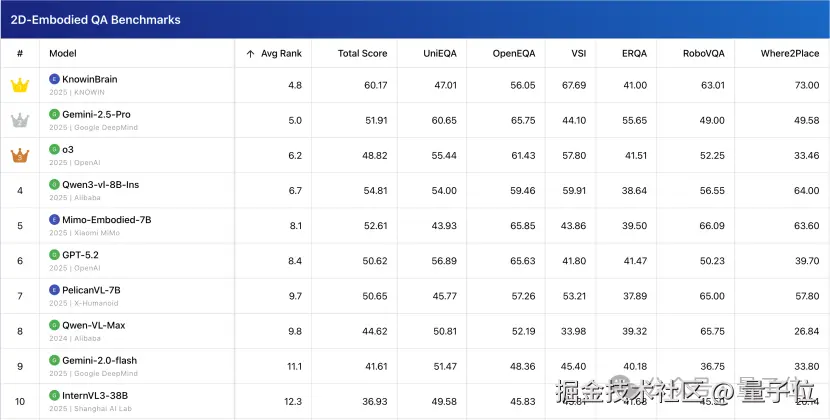 在 Embodied Knowledge_(具身知识)_这一单项上,KnowinBrain 稍落后 Gemini-2.5-pro,位列第二。