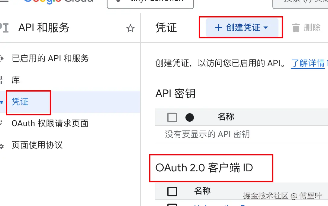在 Google Cloud Console 的"API 与服务 -> 凭据"中,至少创建以下 3 类 OAuth 客户端: