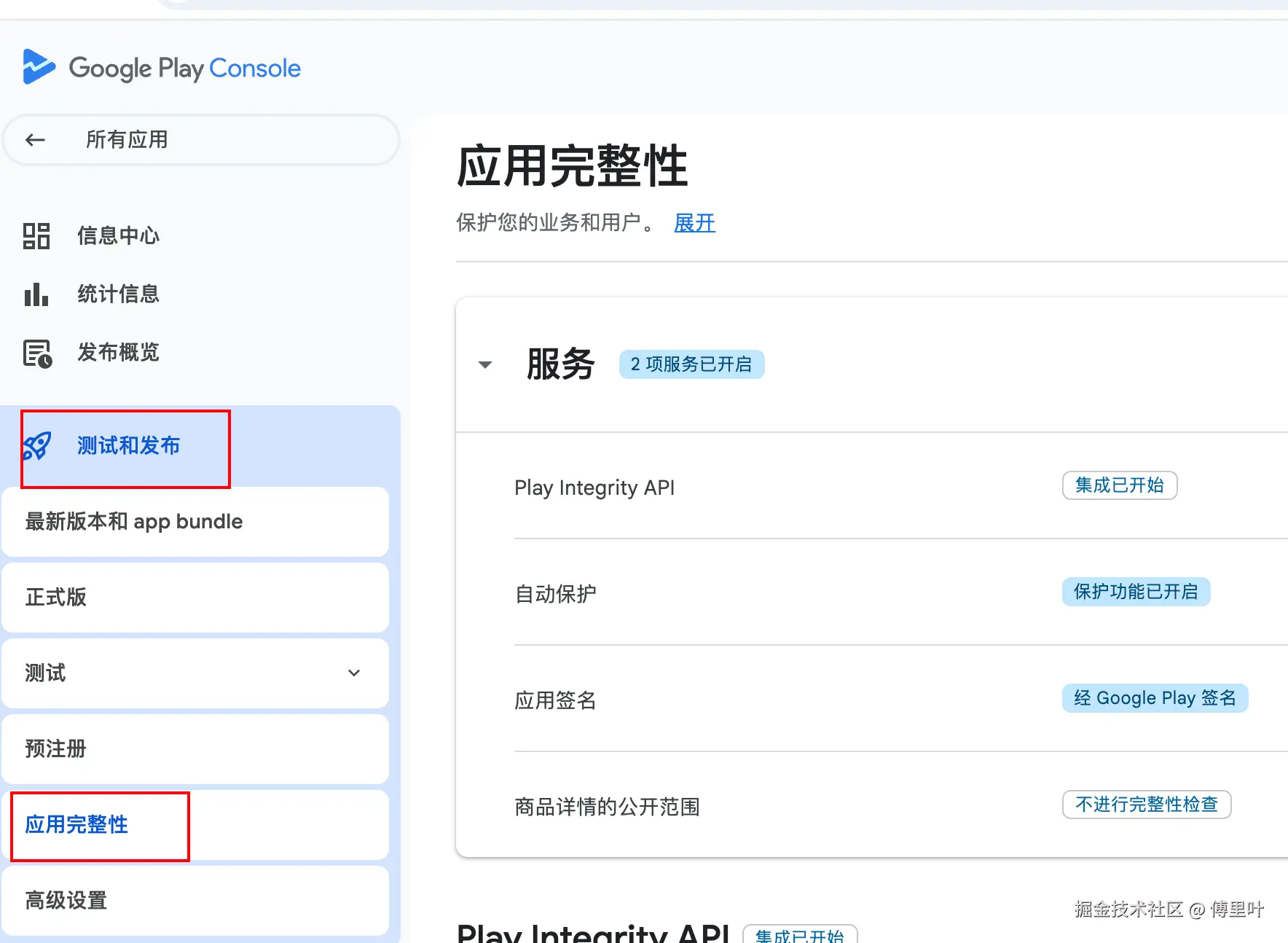 经由Google签名的,则需要新建一个在OAuth 客户端。 - 将Google Play Console对应app项目下,找到应用完整性页面页面,往下拉,看到