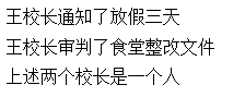 System.out.println("上述两个校长不是一个人");