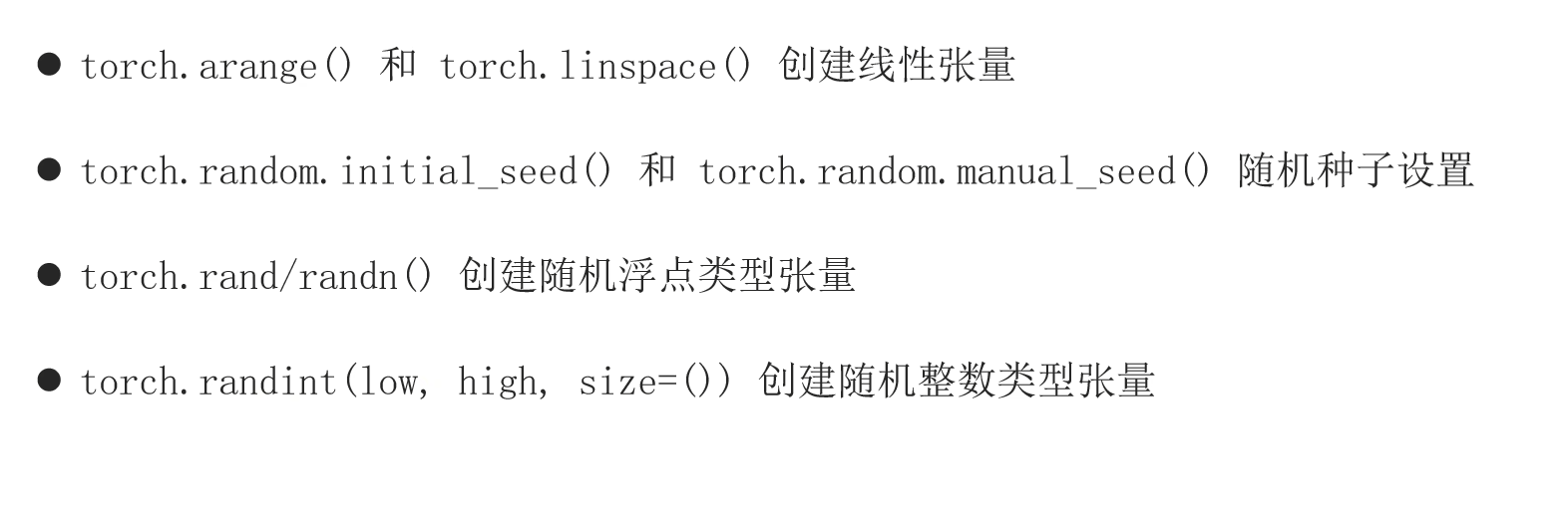 torch.arange(起始值,终止值,步长) #【包左不包右】
